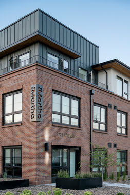 Situated in Boise’s West End is a 3-story multifamily building providing more housing options in an up-and-coming area of town. The building massing is set back from the corner of 18th and Idaho creating community-serving open space. An angled roof-line breaks up the length of the building as it steps back from Idaho St, providing a more traditional residential design at the eastern side of the building. Individual resident entries activate the street with at-grade patios, seating, and landscaping to tie-in with the adjacent neighborhood housing while giving a townhome feel to the building.